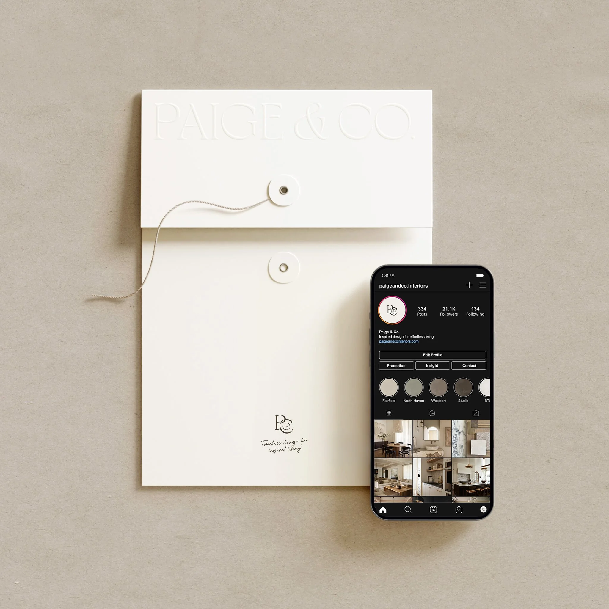 For Paige & Co., the design strategy was centered around creating a brand identity that blends timeless elegance with modern functionality. Drawing inspiration from the brand’s commitment to creating beautiful, functional spaces, the design incorporates organic textures and a balanced colour palette of warm neutrals and earthy tones, evoking a sense of calm, comfort, and connection to nature.